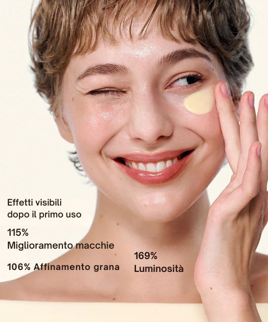 - Niacinamide – dissolve melasma e iperpigmentazione per un incarnato più uniforme;