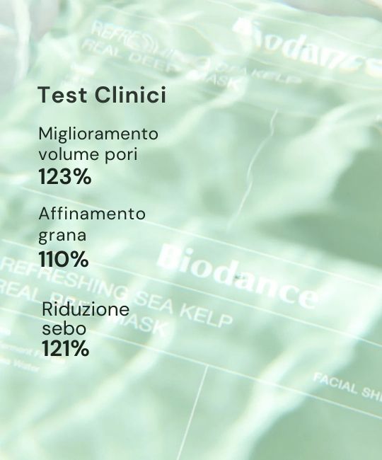 Refreshing Sea Kelp Real Deep Mask è intrisa di siero composto da tanti ingredienti funzionali che permettono di raggiungere riusltati visibili e la famosa glass skin: